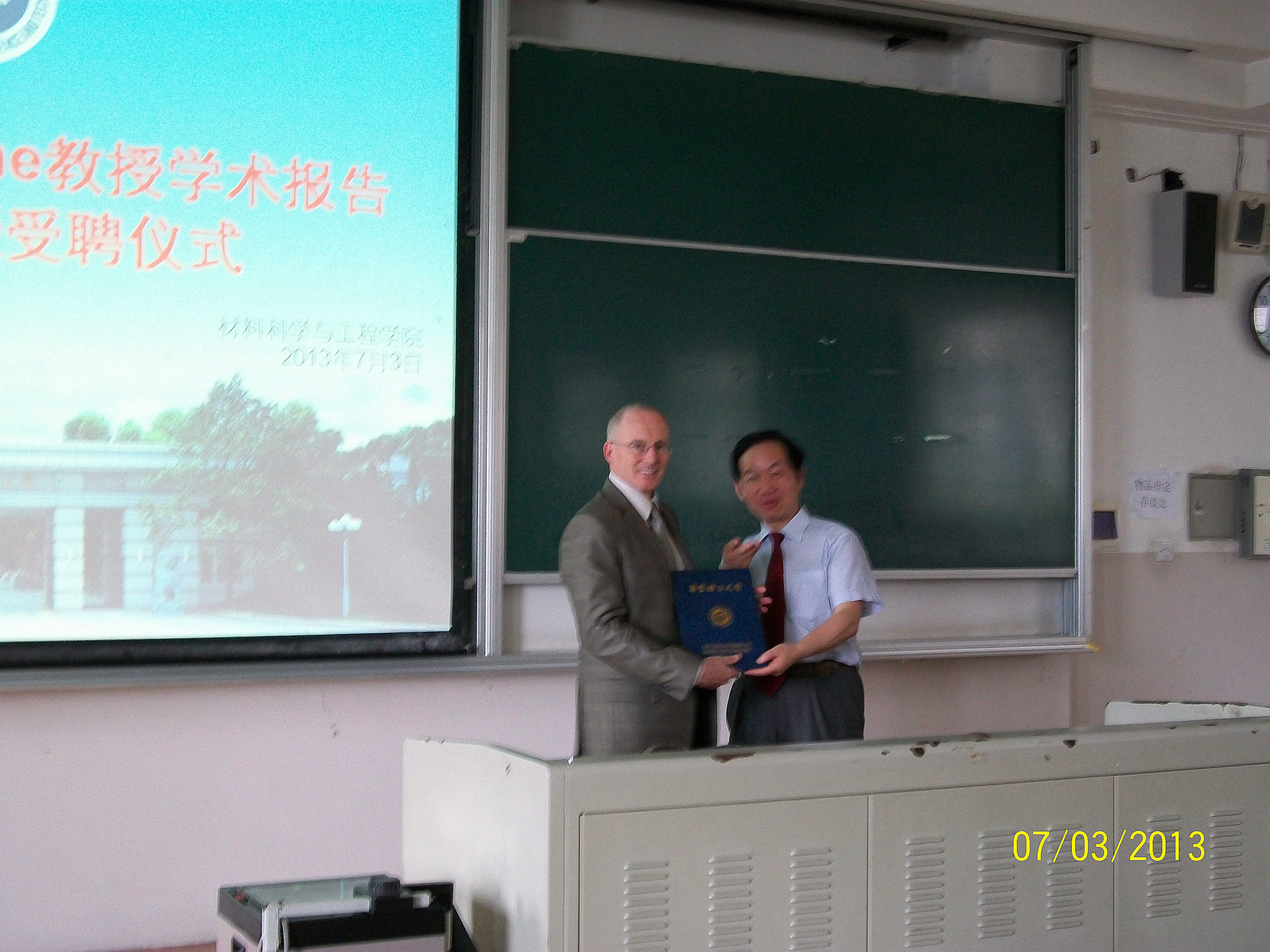 7月3日下午,美国马里兰大学生物科学和生物技术研究所的Gregory F.Payne教授访问我校作学术报告,并受聘为yl23455永利集团讲座教授。yl23455永利集团国际交流处焦家俊处长出席了受聘仪式和学术报告会。仪式由材料学院院长刘昌胜教授主持。