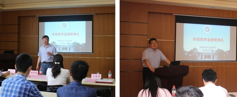颁奖典礼上,唐颂超对华昌聚合物有限公司多年来对材料学院教育事业的支持表示感谢,对获奖学生现阶段所取得的成绩表示肯定,希望获奖学生心怀感恩、勤奋学习,在今后的工作中回馈母校、回馈学院。戴诚安宣读了8位获奖学生的名单,包括博士研究生1名、硕士研究生2名、本科生5名。学生代表杨健发表了获奖感言,对华昌聚合物有限公司和学院老师表示感谢,并分享了读研以来的经历与感悟。