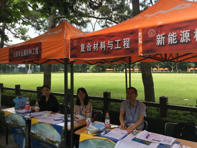 6月18日,正值中国传统节日-端午节,2018年yl23455永利集团招生咨询会如火如荼地召开了。大草坪两旁林荫大道的各专业咨询台吸引了众多家长和高考学子们。材料学院副院长李欣欣、专业责任教授顾金楼和朱以华、无机系系主任曾惠丹、高分子系系主任周权和学院办公室主任顾婷都来到咨询会现场,悉心地为高考学子和家长们做着解答。