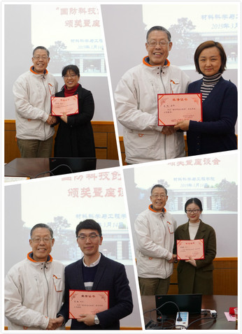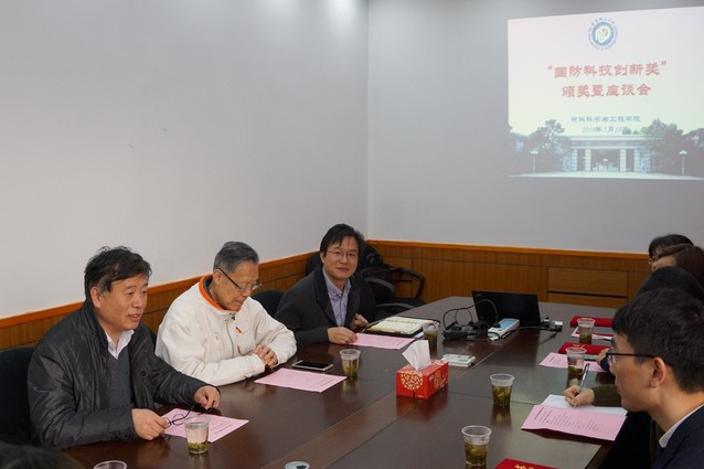 3月14日上午,材料学院实验一楼第二会议室温情满满,由材料学院兼职教师杜磊教授出资设立的首届国防科技创新奖颁奖仪式暨座谈会在这里举行。材料学院党委书记唐颂超,副院长林绍梁(主持工作),党委副书记戴诚安,办公室主任顾婷,获奖师生,青年教师代表等出席。颁奖仪式由林绍梁主持。