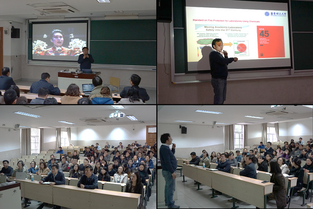 校安全办主任徐宏勇通过借用戏剧兰谱表达实验室安全工作者“忐忑”的心境开始了一堂生动的、内容充实的安全知识培训讲座。培训内容结合材料学院专业特点和可能遇到的实际问题,对实验室防火防爆、化学品安全、辐射安全、生物安全、实验技术安全等方面知识进行系统全面的介绍,并对实验室存在的常见问题及处理方法进行了举例说明,包括气瓶安全放置、易制毒药品的管理、化学药品的摆放及处理、压力容器的安全使用等。与会教师纷纷表示:不听不知道,一听吓一跳。原来实验危险潜藏在身边,今后一定要把安全规范操作牢记于心。通过此次专题讲座,大家学习到了如何防范实验室中的危险因素以及如何采取应急措施,收获颇丰。