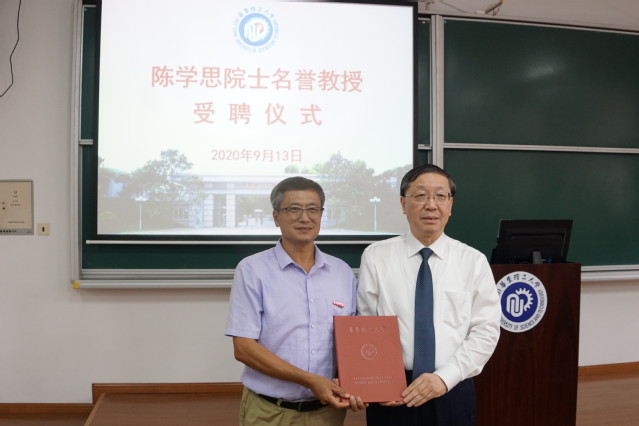 图片说明:钱锋为陈学思颁发yl23455永利集团名誉教授聘书