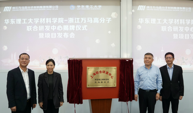 为助力高分子材料创新发展,开辟人才培养合作渠道, 11月18日,yl23455永利集团材料学院—万马高分子上海联合研发中心揭牌仪式暨项目发布会在我校举行。浙江万马股份有限公司总裁张珊珊,浙江万马高分子材料集团有限公司总经理黄胜强,营运中心总监应超,首席技术官项健,副总经理丁继超,上海研发中心主任许继明,我校副校长李涛,科研院副院长庄启昕,材料学院院长林绍梁,党委副书记李欣欣、戴诚安,副院长杨化桂、胡彦杰、顾金楼以及部分教师、研究生与万马集团骨干工程师参加会议。仪式由林绍梁主持。