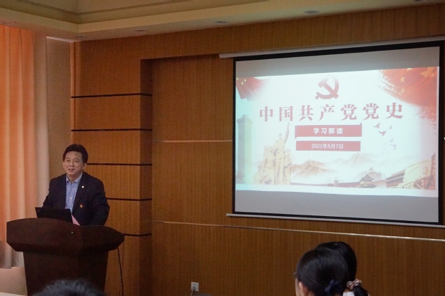 副校长朱为宏对本次活动的开展表示肯定,指出材料学院2020级研究生第七党支部团结奋进,活动有特色,支部有活力,鼓励大家结合党史学习教育和研究生支部特点,进一步凝练创新,创建品牌。随后他从百年党史发展的时间脉络和重大事件,结合自身学习和工作经历和具体实例,阐述了学习党史的重要意义,分享了建党一百年来的重要历史事件,为在场师生上了一节精彩的党课。他要求同学们要积极主动学习党史,从中汲取智慧和力量,将“四个意识”内化于心、外化于行,争做先锋党员,把个人的命运同祖国的未来联系起来,做到讲政治、有信念;讲规矩、有纪律;讲道德、有品行;讲奉献、有作为。