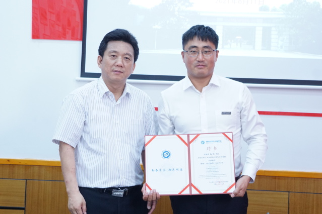 朱为宏副校长对孙刚校友受聘为材料学院名誉教授表示诚挚的欢迎和热烈的祝贺!他表示孙刚校友长期致力于汽车聚烯烃材料领域的研究,拥有多项核心技术,希望今后能充分发挥校友力量,推进校企合作、促进产学研成果转化,在工程博士培养、合力攻关“卡脖子”技术等方面开展深度合作,助推学校一流学科建设和人才培养。