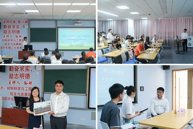 当天下午,由材料学院、校团委、校友与发展联络处共同主办的第26期“名师论道”在奉贤校区C301举行。孙刚受邀作“铸造大国新材,践行科技强国”专题报告。学院党委书记袁媛、党委副书记戴诚安、校团委副书记王寅申、学院教师以及近百名学生参加活动。