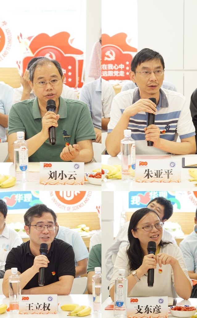 老中青三代党员教师代表围绕“回首悟初心” “奋进新时代” “使命再出发”主题,回顾了党成立100周年波澜壮阔的光辉历程,畅谈自己的“入党初心”,讲述自己的奋斗故事,共话爱党情怀。荣获“光荣在党50年”纪念章教师代表吴平平、王俊深情地回忆年轻时听党话、跟党走,在党的关怀和教育下走向科学报国的经历。“我是1990年从中国科学技术大学调入我校材料学院,当时大学条件比较差,但全校师生在党的领导下又红又专,怀揣着坚定的信仰,我踏实工作,热情严格地指导学生,努力把党旗插在科学的顶峰。”回忆起在校工作的激情往事,指导学生的有趣故事,吴平平仍记忆犹新。“通信卫星远地点发动机采用先进复合材料制造,没有半点儿经验可以借鉴,难度极大。我们勇于实践,不怕失败,终于将我国第一台远地点发动机保驾护航送上蓝天。”说起自己扎根航天科技,奋力拼搏三十年的点点滴滴,王俊激动不已。“工作以来,我也陷入过迷茫低谷,课题组党员教师在我最困难的时候,无私地帮助我,让我能一路坚持下来。”刘小云对身边党员对自己的帮助无限感激。“工作以来最大的荣幸是,始终在我的周围有一批老党员在提携、帮助,指导我,他们教育我从事军工科研一定要耐得住寂寞,一定要有为党和国家服务的态度。一个技术的突破可能需要十年,一定要在这个过程中坚守自己的初心。”中年教师代表朱亚平坚定地说。“作为青年老师一定要提高自己的业务和基础知识,实现为党育人、为国育才的目标,这才是一个好老师的标准。”青年党员教师王立权在发言中提到。“我感受到祖国发生了翻天覆地的变化,给我们提供了很好的学习工作条件。作为一名实验中心的党员教师,我觉得坚守党员初心就是要不断学习,提升本领,更好地为学院师生服务。”青年教师党员支东彦对沐浴在党的光辉下成长,充满感恩。