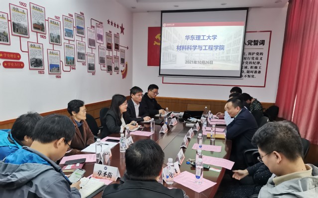 1026日,上海回天新材料有限公司研发总裁赵勇刚和回天研究院院长张立伟、人力资源总监周转转、人力资源部招聘经理赵莉伟、吴紫君来访我校材料学院。这是继521日上海回天新材料有限公司回天研究院院长张立伟访问之后开展的进一步技术交流。双方就锂离子电池材料、复合材料粘接、特种助剂合成等领域开展技术研讨,进一步推动产学研精准对接。材料学院党委书记袁媛、无机材料系主任赵崇军、学院教师江浩、章圣苗、李秋影、夏浙安、张丹枫、沈建华、刘鹏飞、毛芳欣、王文强等参加会议。