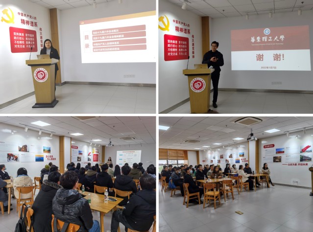 2022年1月7日,材料学院党委书记袁媛在奉贤校区大学生活动中心党建空间,为研一党员上“以史为鉴、开创未来——学习贯彻党的十九届六中全会精神”专题党课。学院党委副书记苏建玲、戴诚安,专职组织员鲁宁宁、研究生辅导员娄梦蝶以及部分研一党员参加活动,活动由戴诚安主持。