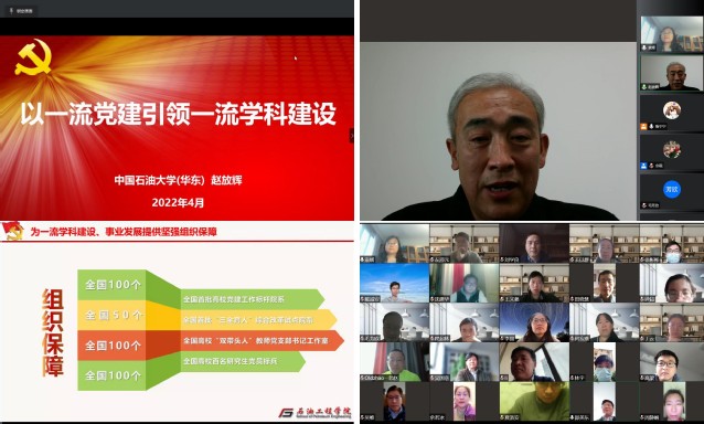 4月19日下午,材料学院邀请中国石油大学(华东)地球科学与技术学院党委书记赵放辉,作题为《以一流党建引领一流学科建设》专题辅导报告,学院全体教职工、研究生党支部书记、党小组组长参会。会议由学院党委书记袁媛主持。