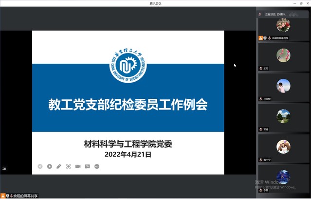 为加强材料学院基层党支部纪检委员队伍建设,更好地发挥全体委员在疫情防控中的监督作用,4月21日下午,材料学院召开基层党支部纪检委员工作例会,学院教工党支部纪检委员、专职组织员出席例会。会议由学院党委副书记兼纪委书记苏建玲主持。