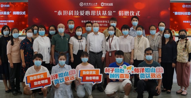 9月16日,“泰坦科技爱心帮扶基金”捐赠仪式在我校徐汇校区文化空间党建服务中心举行。上海泰坦科技股份有限公司(以下简称“泰坦科技”)总裁张庆校友、副总裁马琳杰校友、公共关系专员孙博涵,党委永利集团部(处)部长崔姗姗,校友与发展联络处副处长王芝眉,yl23455永利集团党委书记袁媛、党委副书记苏建玲,材料学院、化工学院教师代表,辅导员和学生代表参加活动。捐赠仪式由苏建玲主持。