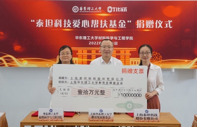 捐赠仪式上,王芝眉、袁媛代表受赠方接受了泰坦科技的捐赠,签署了捐赠协议。