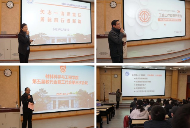会上,第五届双代会代表们审议并通过了2022年材料学院行政工作报告、财务报告和工会工作报告、财务报告。