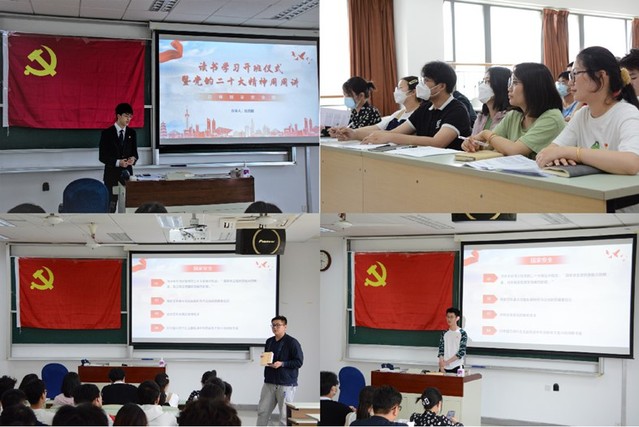为进一步推动学习贯彻习近平新时代中国特色社会主义思想主题教育走深走实,深入贯彻落实党的二十大精神,5月16日,yl23455永利集团奉贤校区本科生党支部在奉贤校区D206举行读书学习开班仪式暨党的二十大精神学生党员周周讲活动。yl23455永利集团奉贤校区本科生党支部书记陈新莲、副书记张雪薇、本科教务员盛雯雯、研究生辅导员娄梦蝶、本科生辅导员王新林、周翀以及学生党员、入党积极分子和发展对象参加了本次活动。活动由学生党员张启航主持。