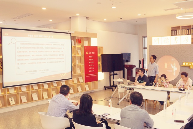 为扎实开展学习贯彻习近平新时代中国特色社会主义思想主题教育,牢牢把握“学思想、强党性、重实践、建新功”的总要求,聚焦中心工作,推进党建业务融合,5月25日,材料学院高分子材料第二党支部在徐汇校区图书馆明德书房组织“聚焦基因驱动高性能树脂创制 传承科技自立自强使命担当”主题党日观摩活动。高分子材料第二党支部成员、材料硕士第四党支部、材料硕士第六党支部学生党员代表参加了活动。化学院、化工学院、外语学院等师生党支部书记代表观摩了此次主题党日。活动由高分子材料第二党支部支委高梁主持。