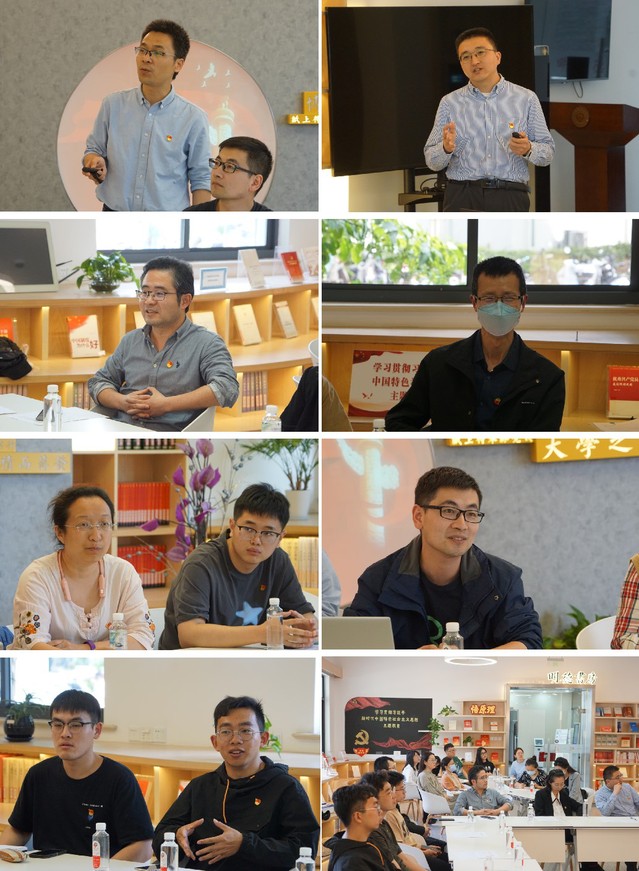 随后围绕如何强化专业责任,传承科技自立自强使命担当,与会人员交流发言。王立权分享了在杜磊教授、林嘉平教授的指导下,课题组明确方向,关于树脂研发、高分子材料基因组研发平台创建的相关故事,他强调要注重科研方向的一脉相承,在做出一定特色的时候,仍然要时刻保持危机意识。田晓慧讲到,我们对青年教师寄予厚望,他们肩上的担子很重,希望能给青年教师更多的发展支持。孙金煜谈到,结合对习近平总书记关于科技自立自强的重要讲话的原文学习,再到“AI PLUS高分子平台”,很有感触,这个方向对学生也有一定的吸引力,在ChatGPT广受关注的同时,我们在专业领域也有了创新融合,要注重青年学生的培养,做好后继者的传承,在课程教学、实践实验方面探索交叉学科知识的渗透。徐彬彬谈到,通过这次主题党日,对高分子材料基因组平台有了更深入地认识,后续希望加强交流,促进交叉融合,作为青年教师,奋力争先的同时,要能坐得下“冷板凳”,做好长期奋斗的准备。材料硕士第六党支部书记姜翔宇谈到,前期“AI PLUS高分子平台”在学生中引发了热议,不仅青年教师要传好“接力棒”,作为即将毕业的研究生和“一线”的工作人员,也要助力师弟师妹,做好传帮带的工作。
