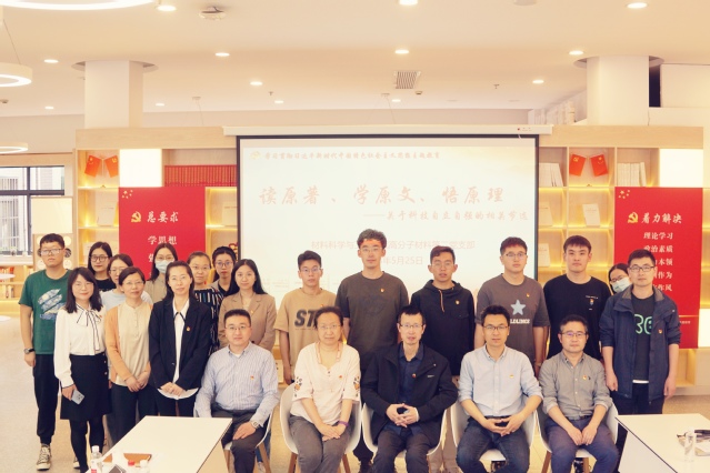 高分子材料第二党支部书记蔡春华围绕《习近平著作选读》《习近平新时代中国特色社会主义思想专题摘编》中关于科技自立自强的原文进行领学,他指出,作为高校教师和科研工作者,要立足新时代新形势,了解行业所需,勇担专业责任,立志在研究领域成为国内领跑者,在前沿交叉领域成为开拓者,坚持原始创新、集成创新、开放创新一体设计,实现有效贯通。