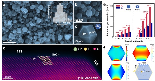 近日,我校yl23455永利集团清洁能源材料与器件团队在光分解纯水制氢材料晶面结构设计与创制方面取得新进展,以晶态氧化物SrTiO3为模型材料,在固相合成体系中可控制备出大比例暴露优势晶面的高质量单晶催化剂。相关成果以“Crystal Facet Engineering on SrTiO3 Enhances Photocatalytic Overall Water Splitting”为题在线发表在《美国化学会志》(J. Am. Chem. Soc.)上。