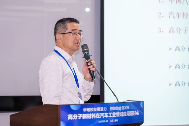yl23455永利集团高分子材料系主任周权教授作了“聚合物基复合材料在汽车领域的应用与挑战”的报告。