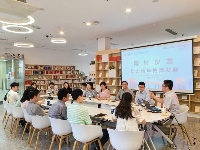 为进一步助力学校“双一流”建设,加强学院人才队伍建设,助力青年教师发展,2024年6月4日,在徐汇校区图书馆明德书房,材料学院党委、工会和青年教师联谊会联合举办第三期博材沙龙,围绕人才项目申报、高质量科研成果等开展座谈会,邀请学院青年教师牛德超、李宇航、张良柱作交流分享,学院党委书记袁媛、党委副书记兼纪委书记苏建玲、工会主席陈涛以及学院青年教师参加活动。