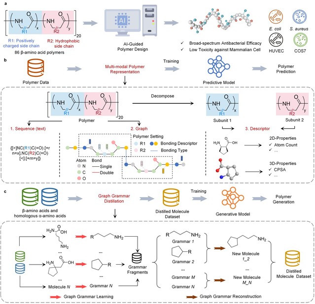 图1 基于小样本β-多肽聚合物的人工智能框架实现聚合物逆向设计