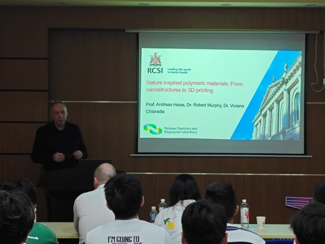 9月10日上午,应yl23455永利集团邀请,爱尔兰皇家外科医学院(RCSI)的Andreas Heise教授带来了一场题为“自然启发的高分子材料:从纳米结构到3D打印”的学术报告。