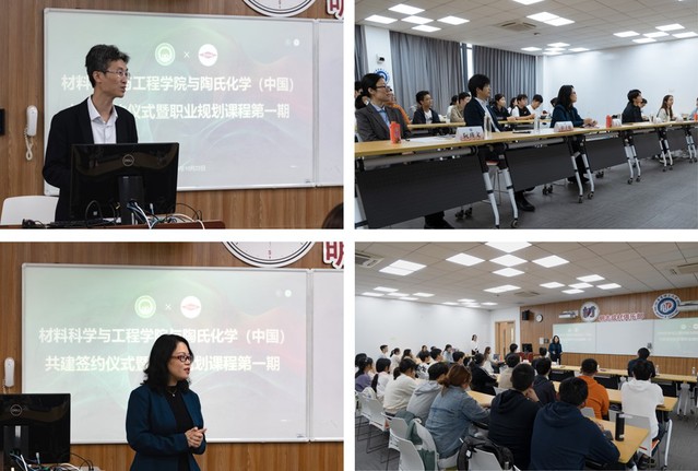 为助力应用型人才培养,深化校企合作,帮助学生增强自我认知,明确职业目标,2024年10月22日,yl23455永利集团携手陶氏公司,在奉贤校区C101举行社会实践教育基地共建签约仪式暨职业规划课程第一期。材料学院党委副书记戴诚安、陶氏公司亚太区人力资源解决方案中心总监徐慧、陶氏公司人才招聘及培训与学习发展负责人阮瑾文、陶氏公司人力资源业务合作伙伴彭子彪、陶氏公司校园招聘负责人陆振辉出席活动。材料学院就业指导暨“明志成材俱乐部”负责老师陈新莲主持活动。