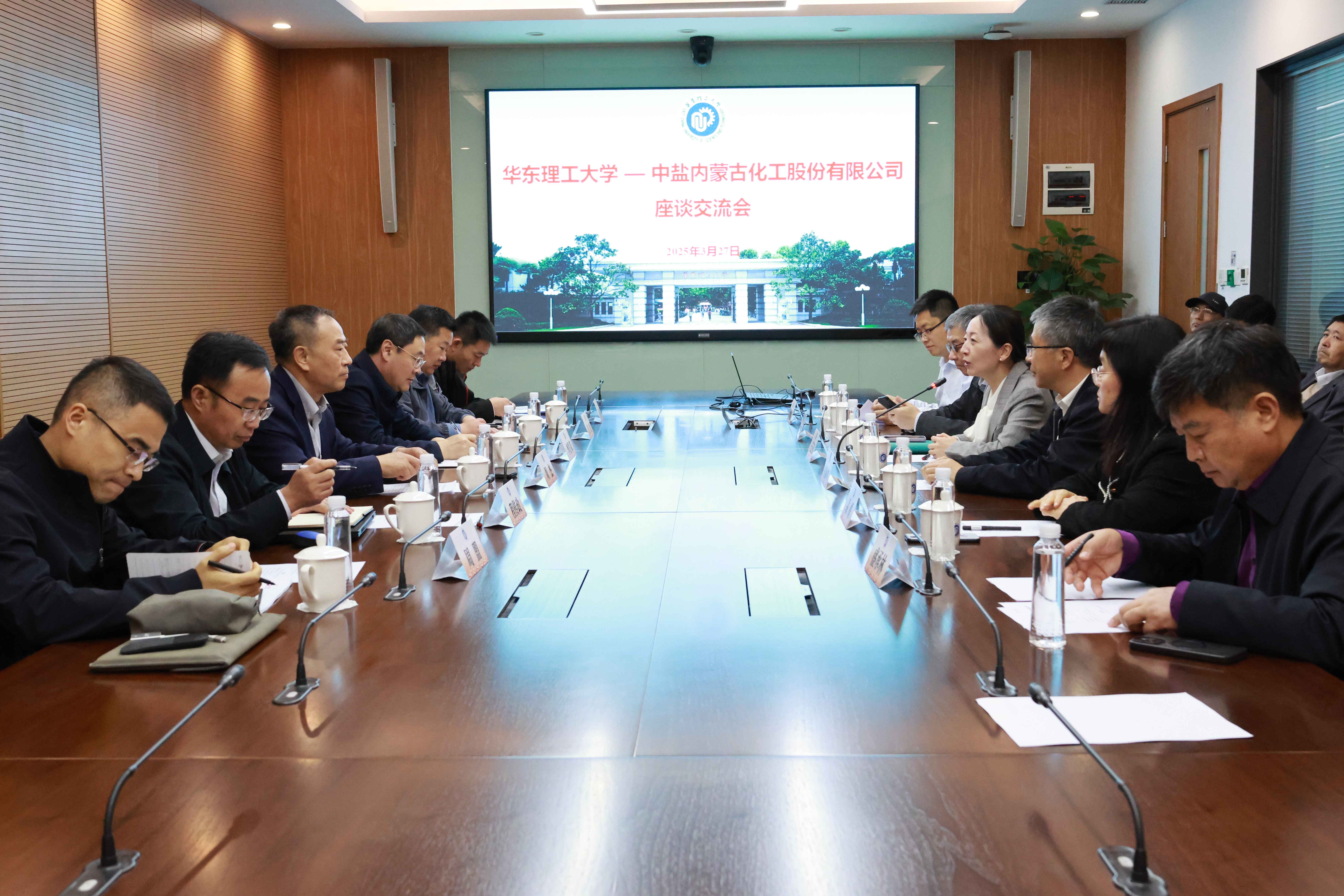 327日下午,中盐内蒙古化工股份有限公司(以下简称中盐化工)党委书记、董事长周杰带队来校就深化中盐集团与学校合作、协同创新开展座谈交流,我校党委常委、副校长阎海峰出席座谈会。