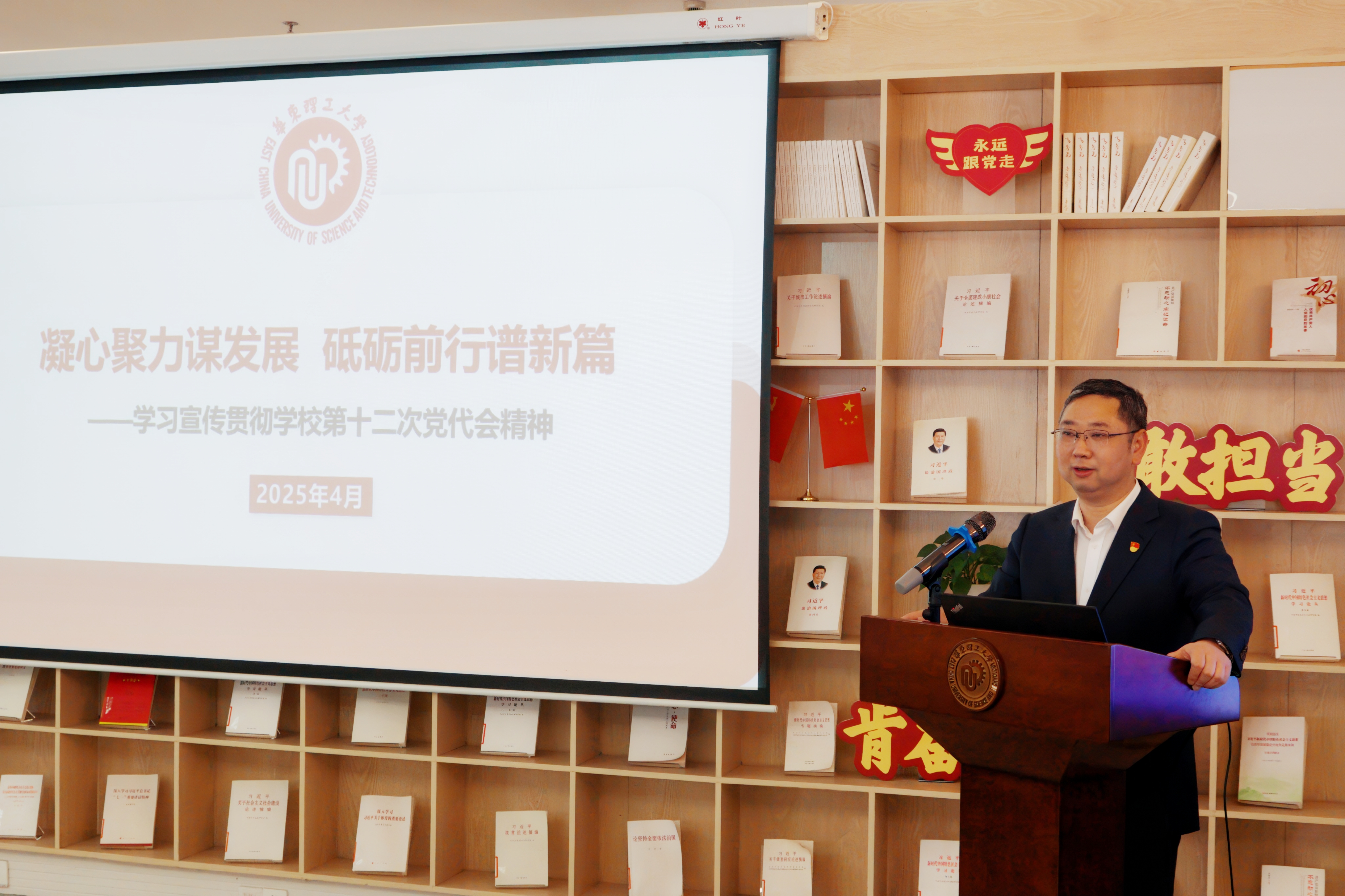 宋来从“充分认识第十二次党代会的里程碑意义”“准确把握党代会报告的丰富内涵”“贯彻落实党代会精神的实践要求”等方面,对党代会精神的重大意义、大会主题、学校第十一次党代会以来取得的发展成就和面临的挑战、学校72年砥砺奋进的办学经验与主要体会,以及学校发展目标、发展思路与重点举措和实现学校高质量发展的政治保证等内容进行深入阐释与解读。