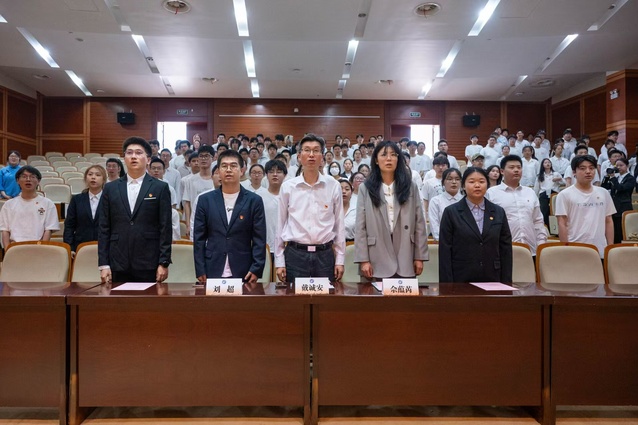 新团员入团仪式在庄严肃穆的氛围中举行。学生团委副书记陈百合宣读新发展团员名单,学生会执行主席王梓屹为新团员佩戴团徽。新团员面向团旗庄严宣誓,以铿锵誓言表达对共青团的忠诚及为共产主义事业奋斗的坚定信念。