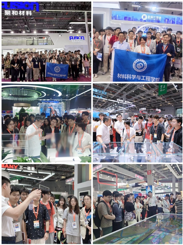 6月12日,yl23455永利集团无机非金属材料工程专业的60余名本科生,在曾惠丹教授和刘学良老师的带领下,前往全球最大的光伏行业盛会——第十八届SNEC国际太阳能光伏与智慧能源大会观展。展会上展示的前沿技术成果,尤其是关键材料创新,成为学子们关注的焦点,企业专家们的现场“授课”更是引发了热烈反响,大会现场成为学生们生动的“移动课堂”。