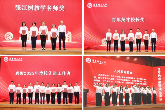 校党委书记蒋传海向全校教职员工致以节日问候,向所有受表彰的集体和个人表示祝贺。他指出,每一位教师都是学校事业发展的宝贵财富。学校事业发展至今,离不开一代代华理人的坚守与耕耘。过去一年,广大教职员工深入贯彻落实全国教育大会精神和《教育强国建设规划纲要(20242035年)》,在人才培养、科学研究、社会服务等各方面取得扎实成效,为学校全面建设多学科协同发展、特色鲜明的世界一流大学奠定了坚实基础,为教育强国建设作出了积极贡献。