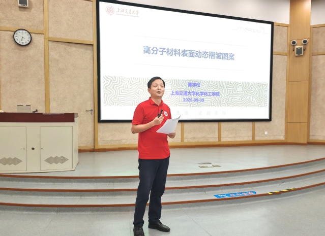姜学松教授作题为“高分子材料表面动态褶皱图案”的交流报告。他从一张白纸在褶皱前后的承重变化为例,形象地展示了褶皱的功能。结合在华理求学的经历,工作后与同窗好友研讨学术的故事,深入浅出地介绍了课题组围绕智能高分子表面中动态微纳米图案制备和调控这一关键问题,将动态交联聚合物网络引入到自然界常见的表面褶皱图案体系中,提出了基于动态化学构建动态表面微纳米图案的新策略,解决了表面动态图案难以制备的难题,构建了一系列具有温度、pH、可见光和红外光响应性的多级次图案化表面,利用动态表面褶皱图案构建3D动态指纹的策略,探索了动态表面褶皱图案作为智能光学材料在动态光栅、传感、防伪等领域的应用,为新生们打开了科研思路。
