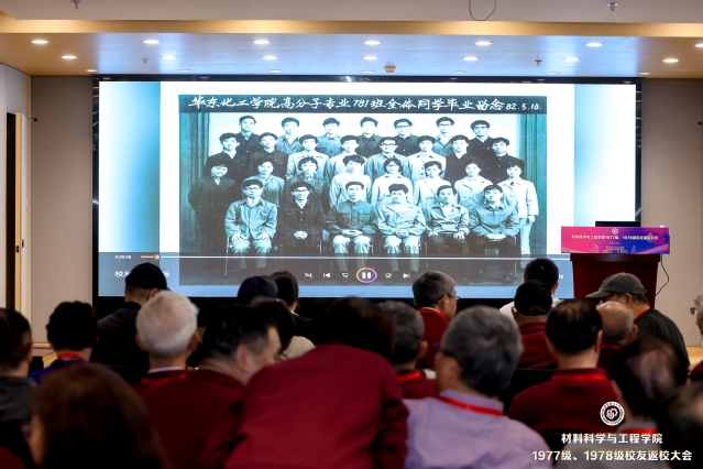天南地北,相聚华理。看到熟悉的笑脸,回忆满满,无比亲切。大会从一段“寻青春印记 谱材子华章”青春相册视频拉开序幕,看到一张张老照片,共同回忆在华理相遇、相识、相伴的青春岁月,同时观看了材料学院校友活动剪影。
