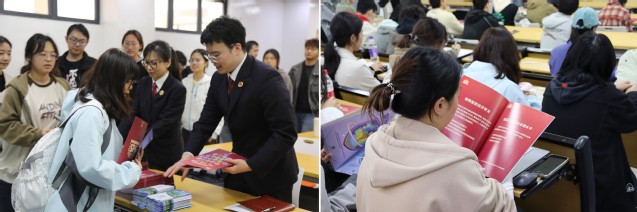 为深入学习贯彻总体国家安全观,切实增强大学生国家安全意识,全面筑牢校园安全防线,4月14日下午,材料学院特邀上海市人民检察院第一分院检察委员会委员、第二检察部主任刘金泽,在奉贤校区C201教室开展“共护国家安全・共筑爱国长城”专题讲座。上海市检一分院、奉贤区检察院相关工作人员,材料学院团委书记张雪薇及近百名本科生出席本次活动。